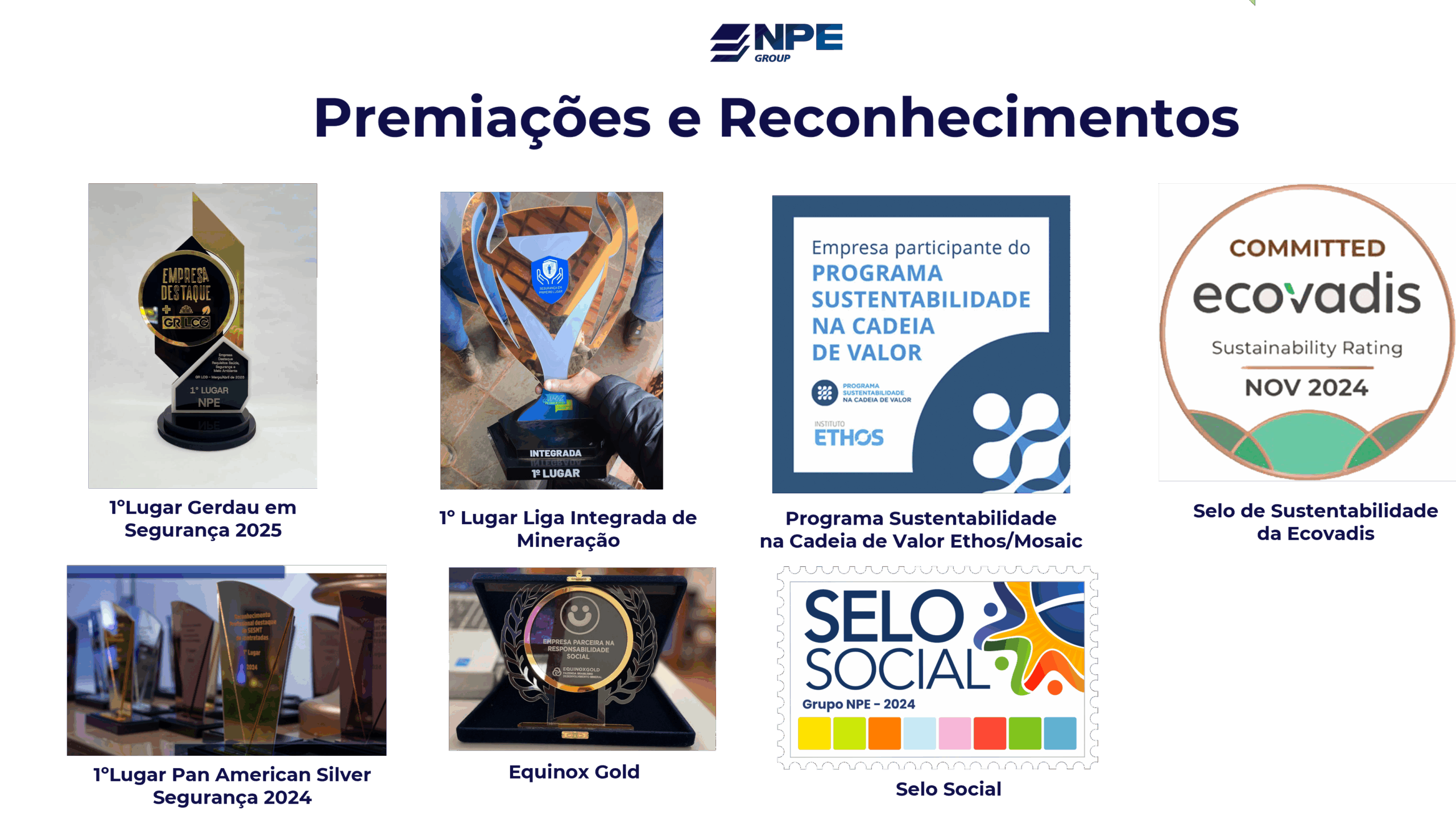 No Grupo NPE, acreditamos que cada conquista é fruto do comprometimento, da dedicação e da excelência de nossos colaboradores. Ao longo da nossa trajetória, recebemos reconhecimentos e premiações que reforçam o nosso propósito de entregar soluções de qualidade, sempre com foco em segurança, inovação e sustentabilidade.